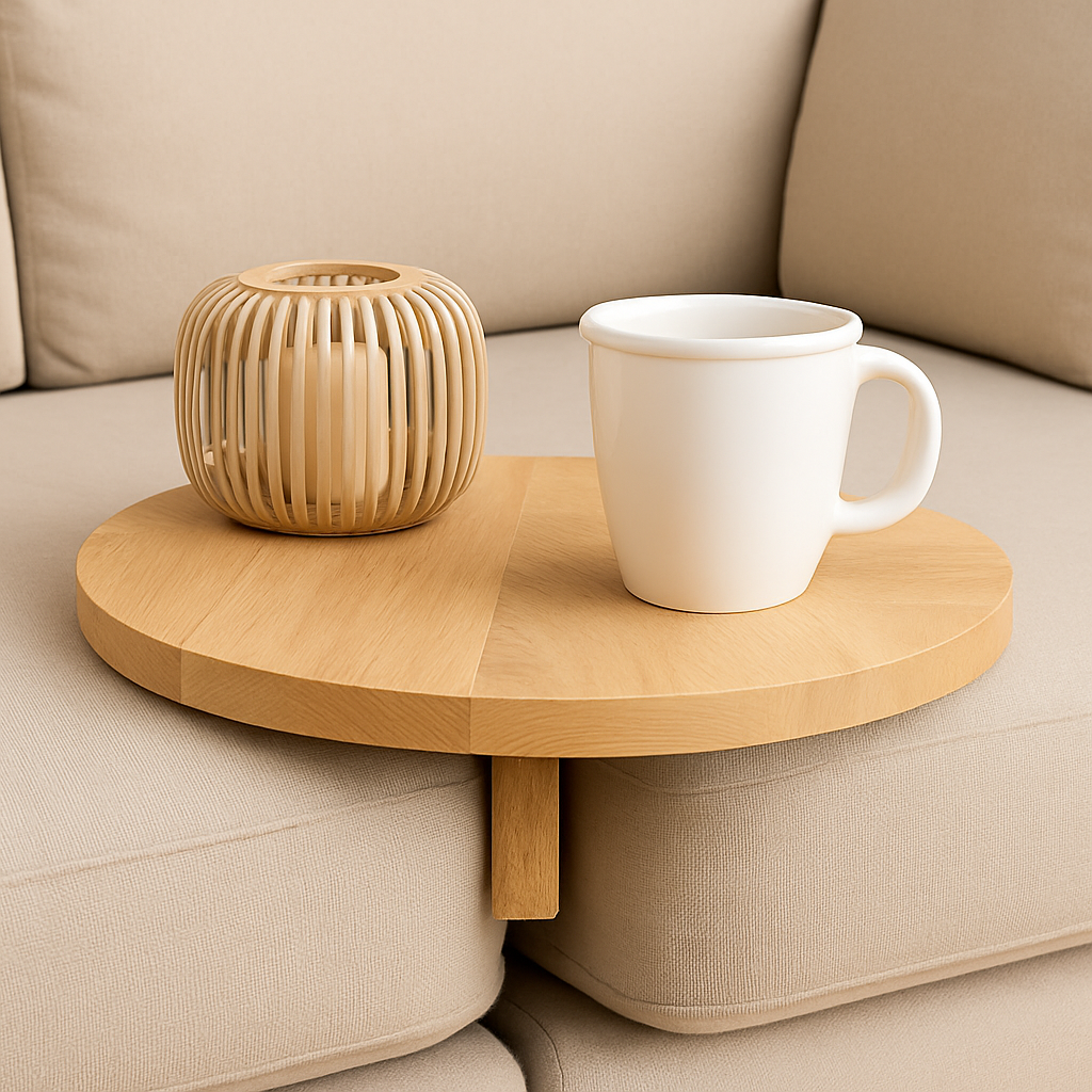 Unser handgefertigtes Sofa-Ablagebrett verwandelt deine Sofalehne in eine elegante Ablagefläche für Getränke, Snacks, Bücher oder dein Handy – ganz ohne zusätzlichen Beistelltisch. Ideal für gemütliche Filmabende, entspanntes Lesen oder deinen ersten Kaffee am Morgen.